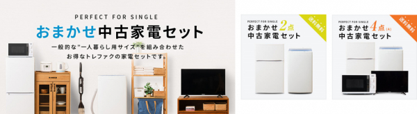 総合リユースの仕入れ力を強みに、新生活を始める単身向けの冷蔵庫・洗濯機2点セットから、レンジ・テレビを追加した4点セットなど複数のラインナップを展開。ECサイト「トレファクONLINE」から注文し、配送・設置対応までの料金込みで新生活をサポートします。