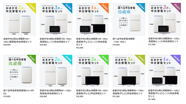 ■ トレファク「おまかせ中古家電セット」商品ラインナップ 一例
