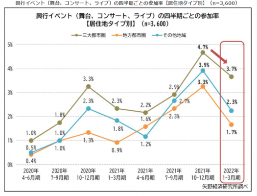興行イベントの参加率、オミクロン拡大でも三大都市圏では下げ抑制、今後の回復に期待