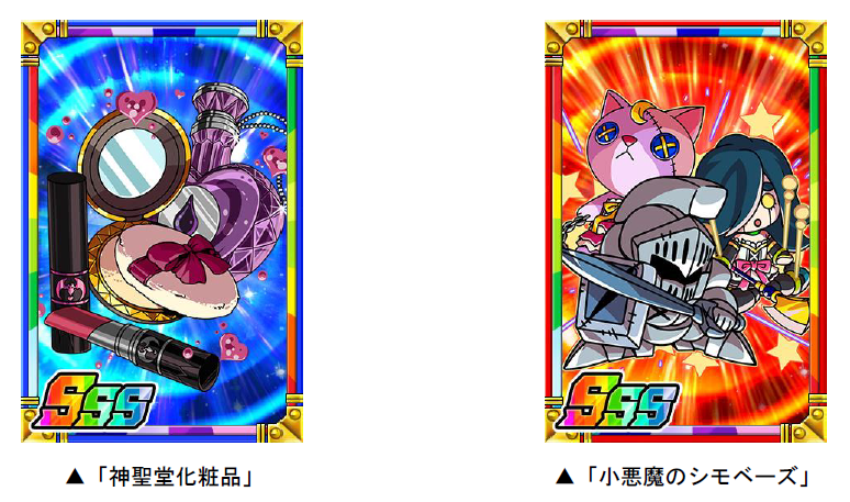 ダンジョンのボスモンスターを倒すと、まれに新たな限定子分カード「神聖堂化粧品」「小悪魔のシモベーズ」が手に入ります。限定子分カードは複数枚集めると進化ができ、子分スキルの効果が強力になります。