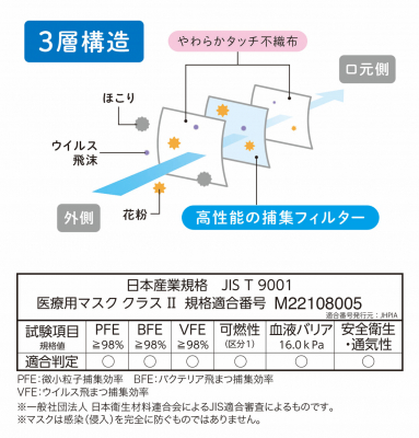 ■日本産業規格「JIS T 9001 医療用マスク クラスII」の適合番号を取得