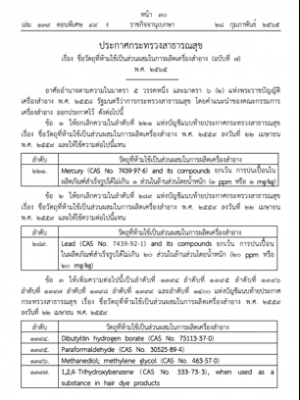 タイ保健省食品医薬品局(FDA)は、2022年2月1日に、禁止化粧品成分の更新されたリストを掲載し、去年までの1,387成分から1,400成分にリストを追加する発表をしました。