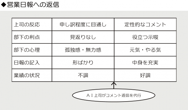 となると、部下は手間をかけて営業日報を作成しても「見返り」がありません。