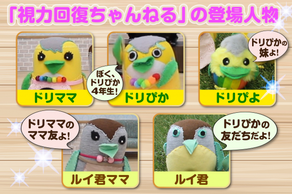 登場するのは眼育総研のオリジナルキャラクター、「ドリママ」と「ドリぴよ」、そしてその仲間たち。