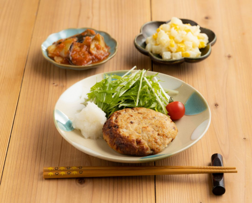※4月4週目お届けセットの中の、「父母ケ浜の魚豆腐ハンバーグセット」の主菜として採用します。