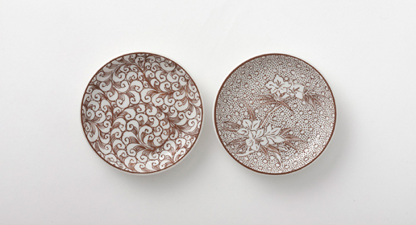 宮本雅夫さんご本人が線描きまで施した豆皿に、色をのせる作業を行います。絵柄は、繁栄を象徴する縁起柄「唐草」と、九谷焼らしい色彩の「さつき」。4/16(土)・4/17(日)は「唐草」、5/15(土)・5/16(日)は「さつき」をご用意しておりますので、お好きな柄の日程をお選び下さい。