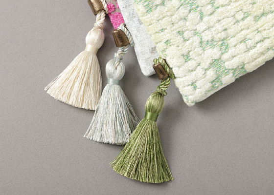 遠目からでも「JOJO reticule」のデザインを物語るのが、ふとした仕草を優雅に演出するタッセルのあしらいです。カードケースをきものの胸元や帯に挟み、さりげなくタッセルを覗かせる装い方もお楽しみください。