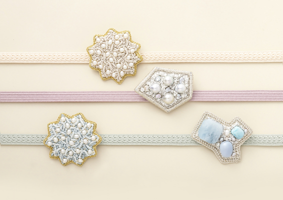 そんな春の優しい色を絹糸にそっと閉じ込めたような刺繍ジュエリーをご紹介します。帯留めとしても活躍する、精緻な糸の世界をご覧ください。