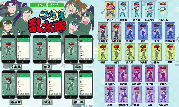 「乱太郎」、「きり丸」、「しんべヱ」の三人組を中心に、忍者のたまご「忍たま」たちが集う忍術学園の「あかるく、たのしく、ゆかい」な毎日を描いた大人気シリーズアニメ。TVアニメ「忍たま乱太郎」のキャラクター別LINE着せかえシリーズの第6弾は「忍術学園6年生」の6点のLINE着せかえ最新作がインクルーズより新登場です!今回は 「潮江文次郎」、「立花仙蔵」、「中在家長次」、「七松小平太」、「善法寺伊作」、「食満留三郎」の忍術学園6年生のキャラクター別デザインとなっております。お気に入りのキャラクターでLINEを着せかえてみてはいかがでしょうか?是非LINE着せかえでもTVアニメ「忍たま乱太郎」の世界をお楽しみください。