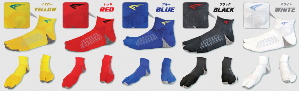 つま先がタビ形状になっているソックスは親指が独立している為、指先に力が入れやすくスィング動作時に踏ん張りが効きやすい特徴があります。また、荷重のかかる母趾球から指先、かかと部分にピンポイントでクッションパイルを配置しました。一方、クッションパイル部以外は薄地に切り替え、必要な部分にメッシュ部を配置することで暑苦しい印象はありません。さらに、擦れて破れやすい部位に特別な補強構造を施しています。