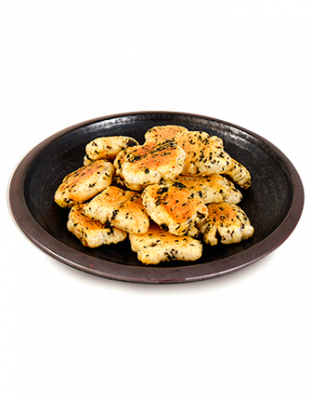 味付けは、「国産天然塩+(ごま油・アマニ油)」の調味油を“じゅわっ”を染み込ませ、 ピリッと辛いアクセントを効かせました。国内産もち米100%・国産海苔使用・化学調味料無添加。