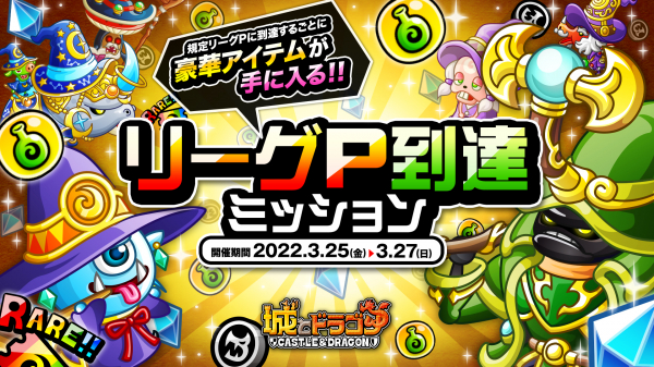 株式会社アソビズム(本社:東京都千代田区、代表取締役:大手智之)は、App Store・Google Playにて好評配信中の『城とドラゴン』で、「リーグ」および「リーグP到達ミッション」を2022年3月25日(金)より開催いたします。
