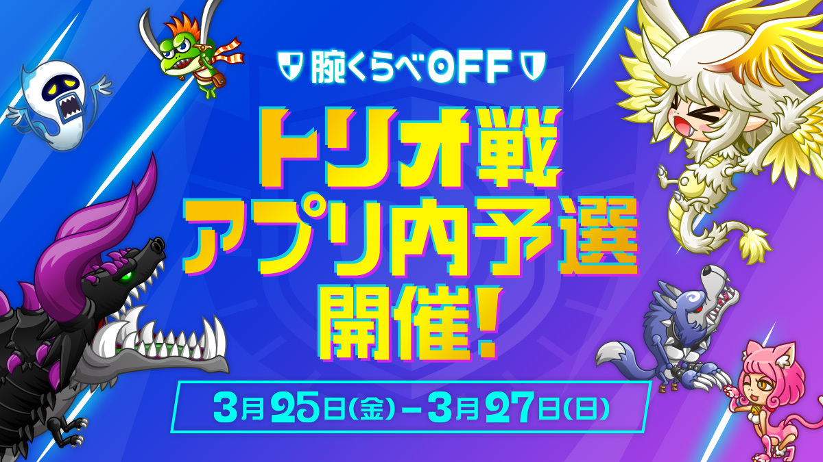 上記期間中、『城ドラ』プレイヤー王者決定戦「城ドラバトルフェス2022」の腕くらべOFFモード・トリオ戦 アプリ内予選第1回を同時開催いたします。ゲーム内にて予選参加設定を行ったプレイヤーの中で、トリオ・ランキング上位10組までが、5月22日(日)に予定されている「3月大会トーナメント」に進出することができます。予選へのご参加、心よりお待ちしています!