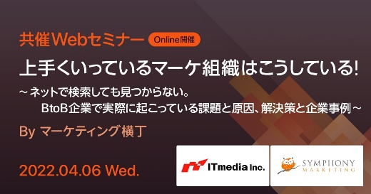 シンフォニーマーケティング株式会社(本社:東京都千代田区、代表取締役:庭山一郎、以下シンフォニーマーケティング)とアイティメディア株式会社(本社:東京都千代田区、代表取締役社長:大槻利樹、以下アイティメディア)は、4月6日にBtoB企業のマーケティングや人材育成に関わる方を対象に、オンライン共催セミナーを開催します。