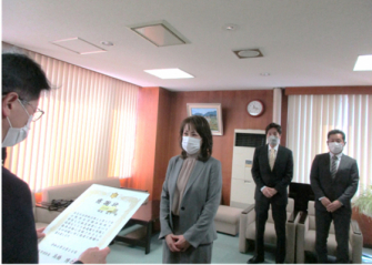 当時を振り返り、福冨は「座ってすぐにいびきが聞こえたので変だと思いすぐ行動した」、森田は「救命講習を受けていたので落ち着いてできた」と話しました。小林も「同僚を救えて良かった」と胸をなでおろし、感謝状を手渡した高橋消防長からは「勇気ある行動で見事な連係プレー」とお褒めの言葉をいただきました。