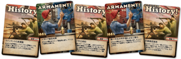 しかし、「軍備」のプレイのためにカードを使いすぎたり、「歴史」によって軍事的緊張が高まりすぎると、第二次世界大戦が勃発してしまいます。