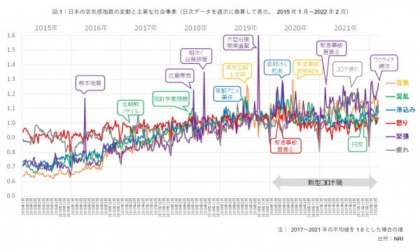 NRIではこれらの指標を「日本の空気感指数」と名付け、日本社会の空気感の変動を