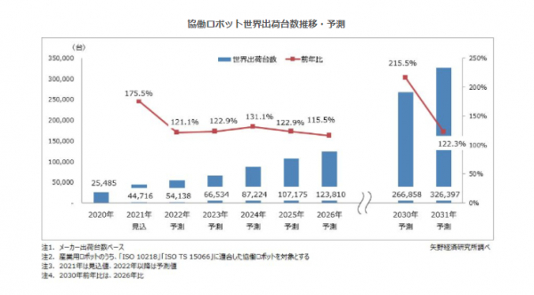 株式会社矢野経済研究所(代表取締役社長:水越孝)は、協働ロボット世界市場を調査し、主要国の関連政策や支援制度、参入企業動向、将来展望を明らかにいたしました。