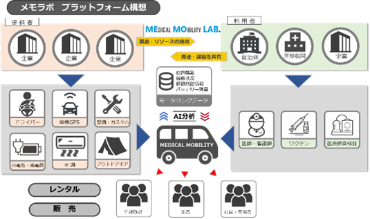 メモラボでは、これまでキャンピングカーを多くの医療機関へレンタルしてきた実績を活かし、自動車メーカー、エネルギー事業者、交通事業者、Maas関連事業者など、医療向けモビリティの開発に必要とされる製品・サービスを持つ企業に対して参加の呼びかけを行い、業種を越えたパートナー連携を目指しています。