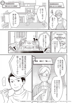 コミックほげっとの新作マンガ。緊急事態宣言と蔓延防止策によって、大打撃を受けた飲食店。時短営業、外出自粛、席数の削減、アルコール類提供不可など様々な制約の中、生き残りをかけた人たちの葛藤を実話を下地にして漫画化した作品が、漫画制作会社サイドランチにて制作され、めちゃコミックにて3月25日より掲載スタート!