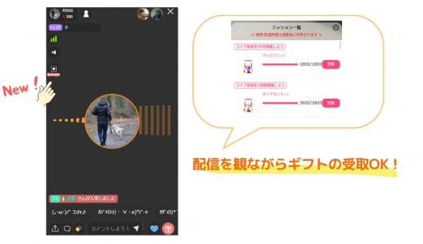配信画面・視聴画面の両方に、ミッション確認ボタンを新たに設置しました!