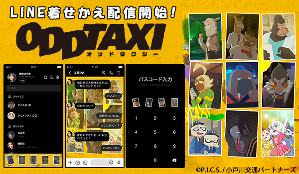 株式会社インクルーズ(東京都渋谷区、代表取締役社長 山﨑 健司)は、LINE株式会社(東京都新宿区、代表取締役社長 出澤 剛)が運営するコミュニケーションアプリ「LINE」内の着せかえショップにて、アニメ「オッドタクシー」のLINE着せかえを2022年3月31日(木)に販売開始致しました。