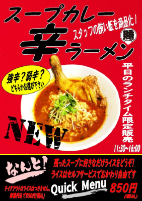 ■スープカレーに辛ラーメンをミックスしたスピードメニュー、辛さの違いで2種類を展開
