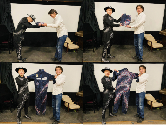 民間宇宙旅行時代到来! ASTRAXと高蔵染の大下倉氏とコラボレーション! 高蔵染めで染められ、シブキアートが施されたASTRAX代表の宇宙飛行訓練服が返還!早速無重力飛行で使用!
