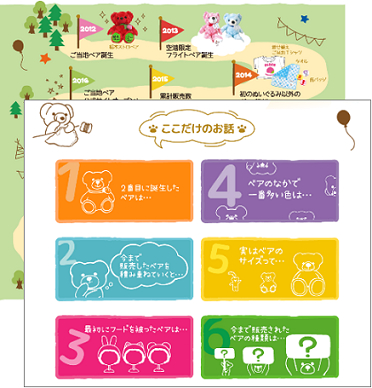 「今まで販売したベアを積み重ねていくと?」「最初にフードを被ったベアは?」「ベアのなかで一番多い色は?」など、ご当地ベアファンでも知らない話がいっぱい?!