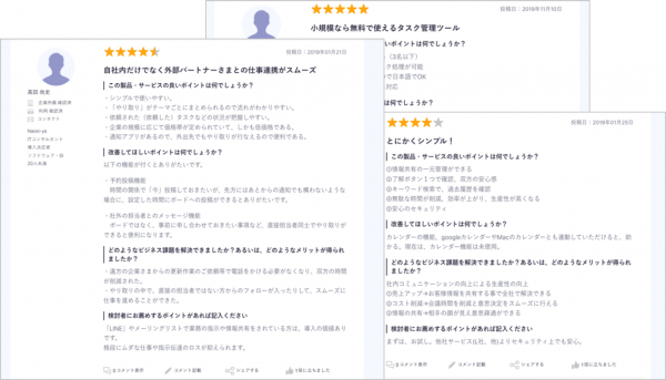 同一の領域にも数多くのサービスがひしめくSaaS製品の導入検討においては、さまざまな情報源がありますが、中でも有用なのが実際のユーザーの口コミ情報であり横並びでの比較情報です。