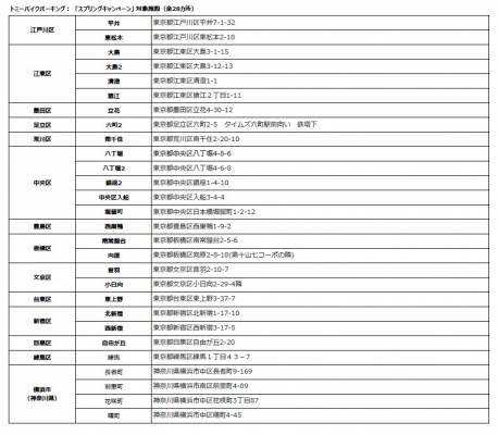 ・ 名称: トミーバイクパーキング “スプリングキャンペーン”