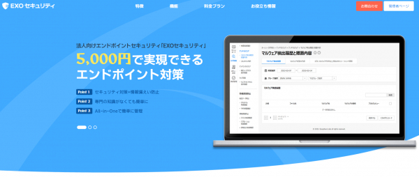 『EXO セキュリティ』は法人向けアンチウイルス対策ソフトです。