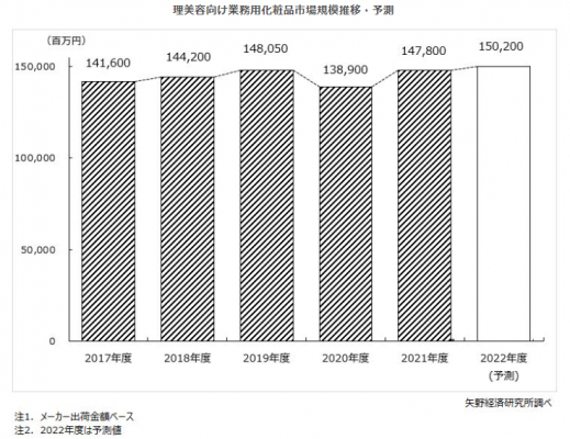 株式会社矢野経済研究所(代表取締役社長:水越孝)は、国内の理美容向け業務用化粧品市場を調査し、市場規模、都道府県別やカテゴリー別の動向、参入企業動向、将来展望を明らかにいたしました。