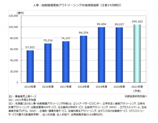株式会社矢野経済研究所(代表取締役社長:水越孝)は、国内の人事・総務関連業務アウトソーシング市場を調査し、主要14分野サービスの動向、参入企業動向、将来展望を明らかにいたしました。