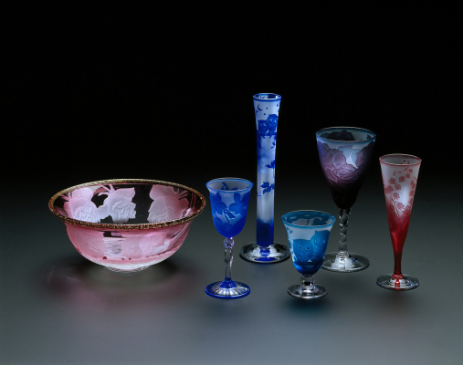 ガラスに精細な彫刻を施し、立体的な模様を描くサンドブラスト。