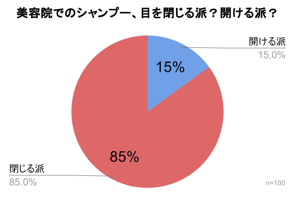 今回のアンケートで、85%と大多数の人が美容院でのシャンプー中に“目を閉じる”ことがわかりました。