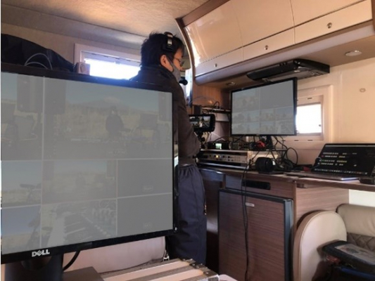 お客様の声:通常は簡易テントを組んで撮影のベース(基地)をつくりますが、1月の寒さだと機材やヒトへの負担がかなりかかっていました。キャンピングカーだと、暖房機能もあるので快適な撮影ができて、コスト的にも中継車をレンタルするよりかなりリーズナブルです。