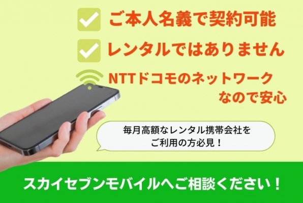 スカイセブンモバイルは、審査なし(※)でご本人様名義のスマートフォンSIMが契約できる総務大臣認定の携帯電話会社です。