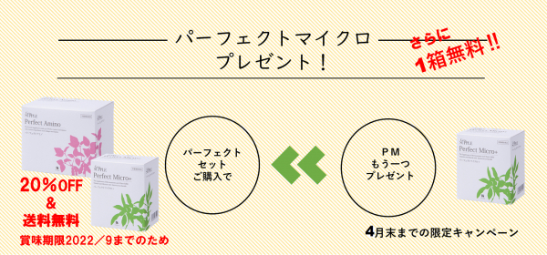 パーフェクトアミノとパーフェクトマイクロプラスの内容量は それぞれ1箱でちょうど一か月分です。 今回のプレゼントでパーフェクトマイクロプラスが2箱にお届け数が増えるので、 こんな使い方もおススメです。