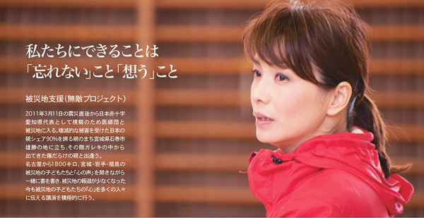 2011年3月11日の震災直後から被災地に入り、 無敵プロジェクト代表として子どもたちと「心の声」を聞きながら一緒に書をかく「書きましょ」という支援活動を精力的に行っている。