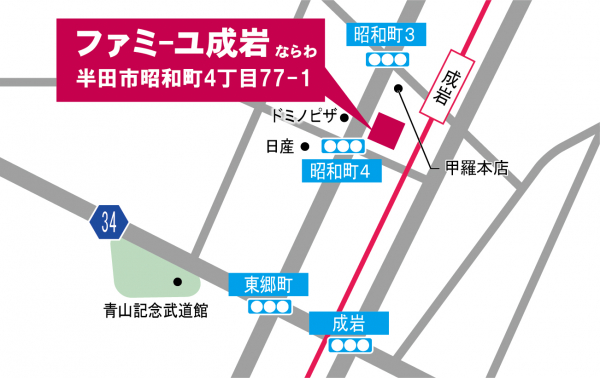 アクセス:〈電車〉名鉄河和線「成岩」駅より徒歩約5分、〈車〉知多半島道路「半田I.C.」より車で約7分