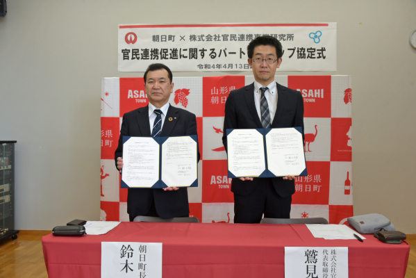 「まちづくりに企業の力を」を経営理念とする株式会社官民連携事業研究所(本社:大阪府四條畷市、代表取締役社長:鷲見 英利、以下「官民連携事業研究所」)は2022年4月13日、山形県朝日町(町長:鈴木 浩幸)と「官民連携促進に関するパートナーシップ協定」を締結しました。官民連携事業研究所としては、今回が24自治体目の連携協定です。