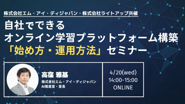 株式会社ライトアップ(本社:東京都渋谷区、代表取締役社長:白石崇、以下ライトアップ)と、株式会社エム・アイ・ディジャパン(本社:新潟県上越市、代表取締役社長:三井 慶満、以下エム・アイ・ディ ジャパン)は、自社でオンライン学習プラットフォームを構築したい企業向けに構築からその後の運営までのポイントをご紹介するオンラインセミナーを共同で開催いたします。