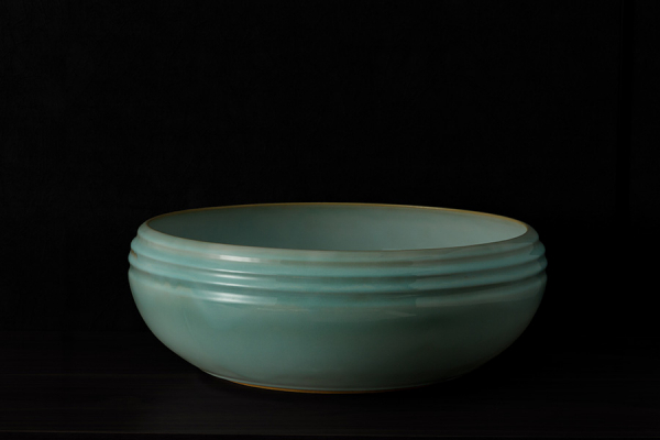 山口県には萩藩の御用窯を端緒とする約400年のやきものの歴史があります。萩焼はとりわけ茶の湯の陶器として高い評価を得てきました。岡田窯八代目の岡田裕氏は、萩市で地元の素材である大道土や白釉をベースに「炎彩」などの加飾技法も工夫し、温かみのある萩焼にエキゾチックな風情も加えています。裕氏の長男・泰氏は、父とともに作陶に取り組みながら、徹底した焼成温度のコントロールのもと、呈色材に銅を用いて無垢で澄んだ美しさを示す淡青釉の器を生み出しました。萩の土の特徴である柔らかな雰囲気を、父子がそれぞれの表現に生かす様子は、萩の現在を伝える新しい風を感じさせます。