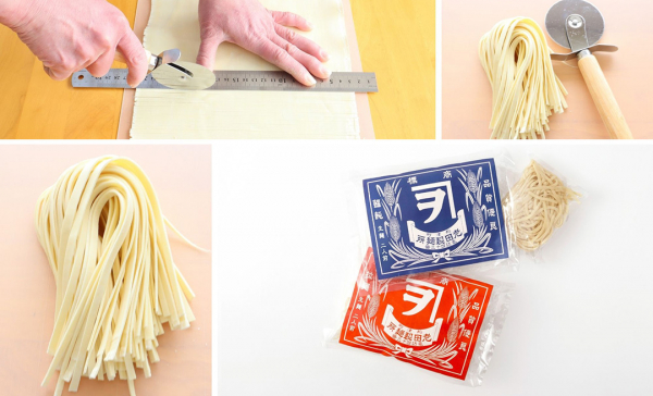 そのあと、生ラーメンの板を、自分の好きな麺の太さに切ってみましょう。