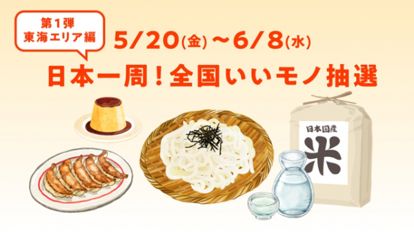 コロナ禍で、以前のように気軽に旅行に行けない人も少なくない中、少しでも旅気分を味わえるお手伝いができたら、と今回の企画をスタートさせました。第1弾は東海エリア。温暖で雨量が多いことから、みかんやお茶をはじめ、伊勢湾、駿河湾では豊かな海産物に恵まれています。抽選で20名の方にWEBカタログギフト『東海のカタログギフト』をプレゼントします。抽選期間は2022年5月20日(金)~6月8日(水) です。今後も、日本の各エリアをテーマにキャンペーンを実施して参りますので、ぜひご参加ください。
