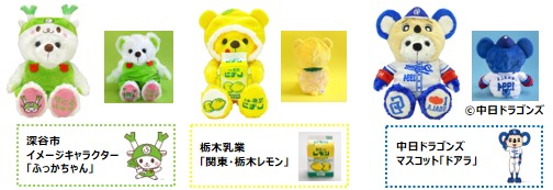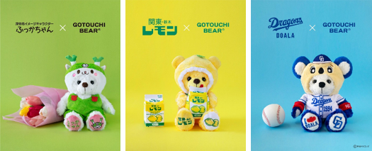 2012年のご当地ベア発売以来、企業、自治体とコラボし、多くのコラボベアを送り出してまいりました。双方のファンの皆様に大変ご好評をいただいているコラボベア、今回は10周年を記念して、初めてふっかちゃん、関東・栃木レモン、ドアラの3種類を同時に発表いたしました。