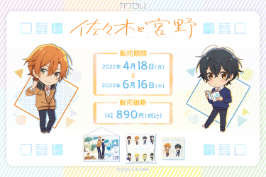 株式会社インクルーズ(東京都渋谷区、代表取締役社長 山﨑 健司)が企画・運営するオンラインくじ「カワセルくじ」にて、4月18日(月)より、「佐々木と宮野」のくじが発売開始になりましたことをご報告させていただきます。