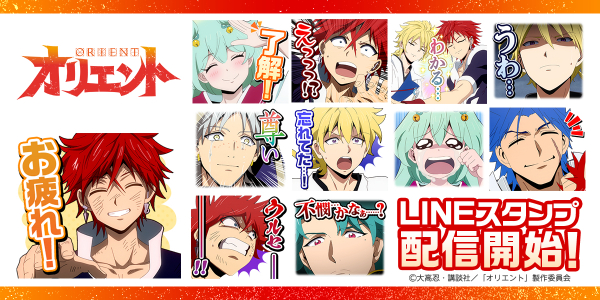 株式会社インクルーズ(東京都渋谷区、代表取締役社長 山﨑 健司)は、LINE株式会社(東京都新宿区、代表取締役社長 出澤 剛)が運営するコミュニケーションアプリ「LINE」内のスタンプショップにて、TVアニメ「オリエント」のLINEスタンプを2022年4月21日(木)に配信致しました。