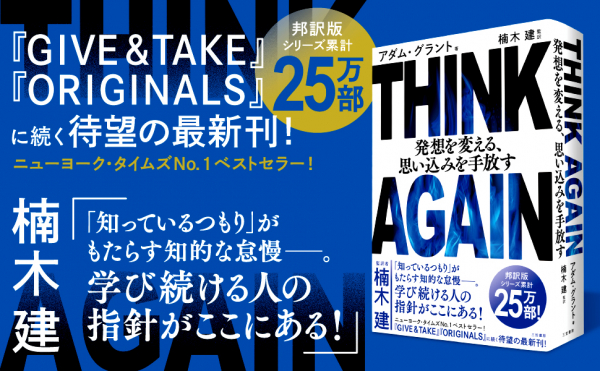 ■『THINK AGAIN 発想を変える、思い込みを手放す』著者アダム・グラント、監訳者楠木建